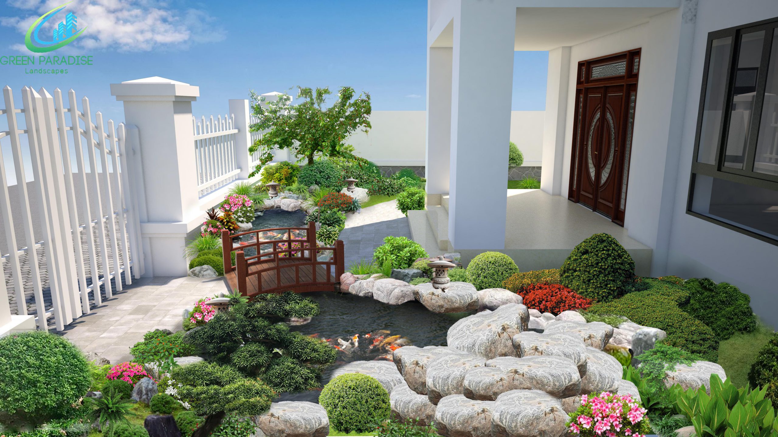 Thiên Đường Xanh chuyên thiết kế và thi công cảnh quan ngoại thất như: Thác nước hiện đại, đài phun nước, nhạc nước nghệ thuật, rèm nước nghệ thuật, hồ cá koi, biểu tượng đá điêu khắc, sân vườn biệt thự… Các sản phẩm của Thiên Đường Xanh luôn được nghiên cứu, lên ý tưởng thiết kế kỹ lưỡng, mang tính đồng bộ hóa ngôn ngữ cao cho toàn công trình, kết hợp với quá trình thi công chuyên nghiệp, đội ngũ kỹ thuật chuyên môn cao, các vật liệu, thiết bị luôn được tuyển chọn kỹ lưỡng về chất lượng và thẩm mỹ để mang đến sản phẩm công trình cảnh quan hoàn hảo nhất nhất tới Quý khách hàng!