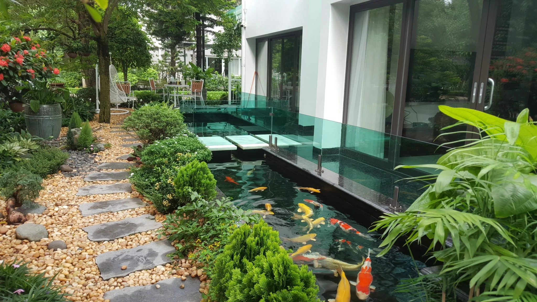Một trong những yếu tố không thể thiếu trong thiết kế tiểu cảnh sân vườn hiện đại là sự hiện diện của nước. Hồ nước nhỏ, suối nhân tạo, hoặc thác nước đều là những lựa chọn tuyệt vời để thêm vào tiểu cảnh, không chỉ tăng thêm vẻ đẹp mà còn mang lại sự thư giãn và dễ chịu cho người sử dụng.